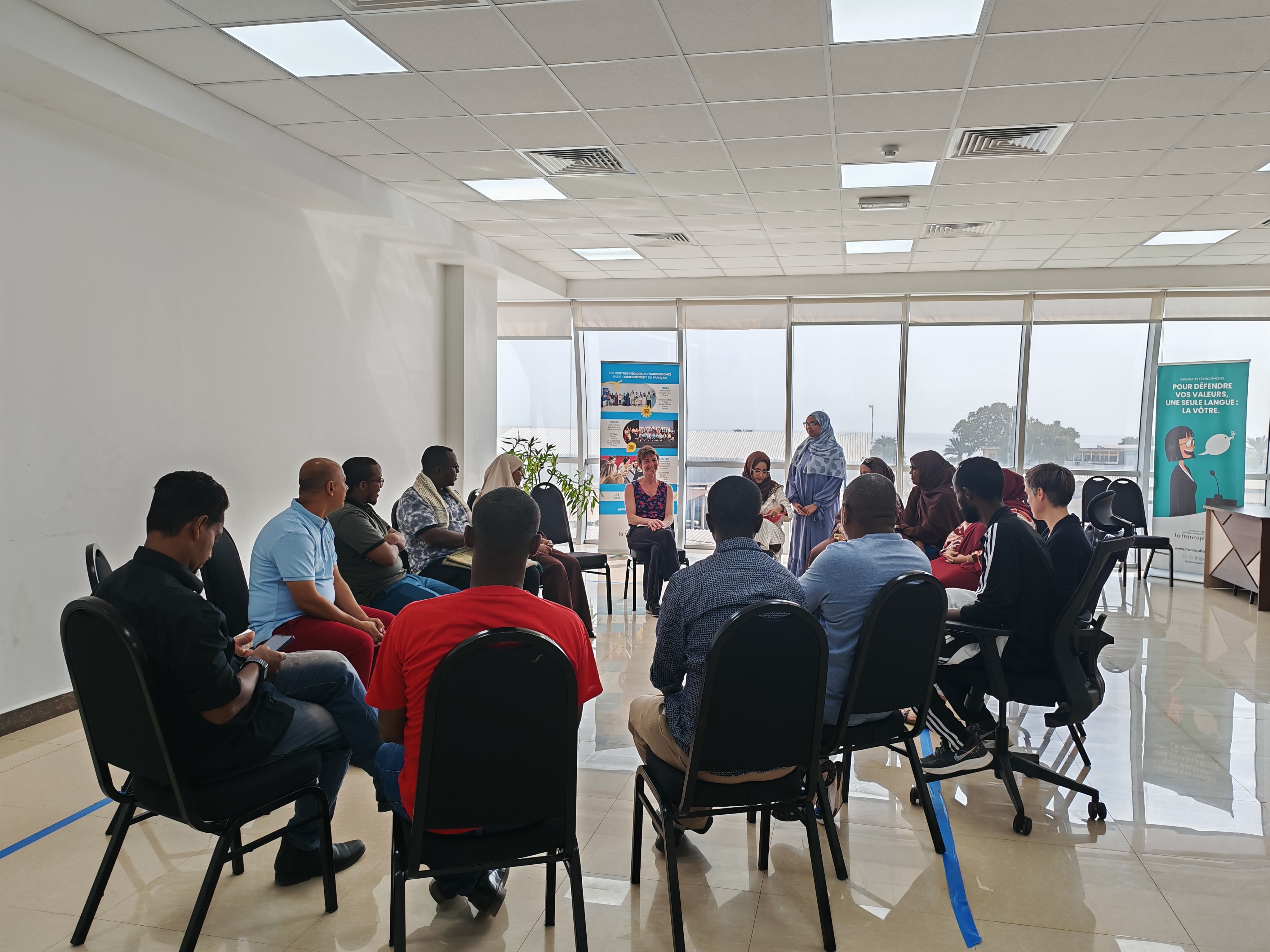 Pendant cinq journées intensives de formation, animées par deux formatrices françaises expertes, Morgane DANIAUD et Céline PALIS, les vingt participants ont été accompagnés dans le développement de compétences clés telles que : la créativité et l’improvisation théâtrale, l’analyse et la conception de projets de mise en scène, l’intégration du théâtre dans les pratiques de classe à travers la littérature et l’expression orale, et la mise en scène d’œuvres destinées aux élèves.