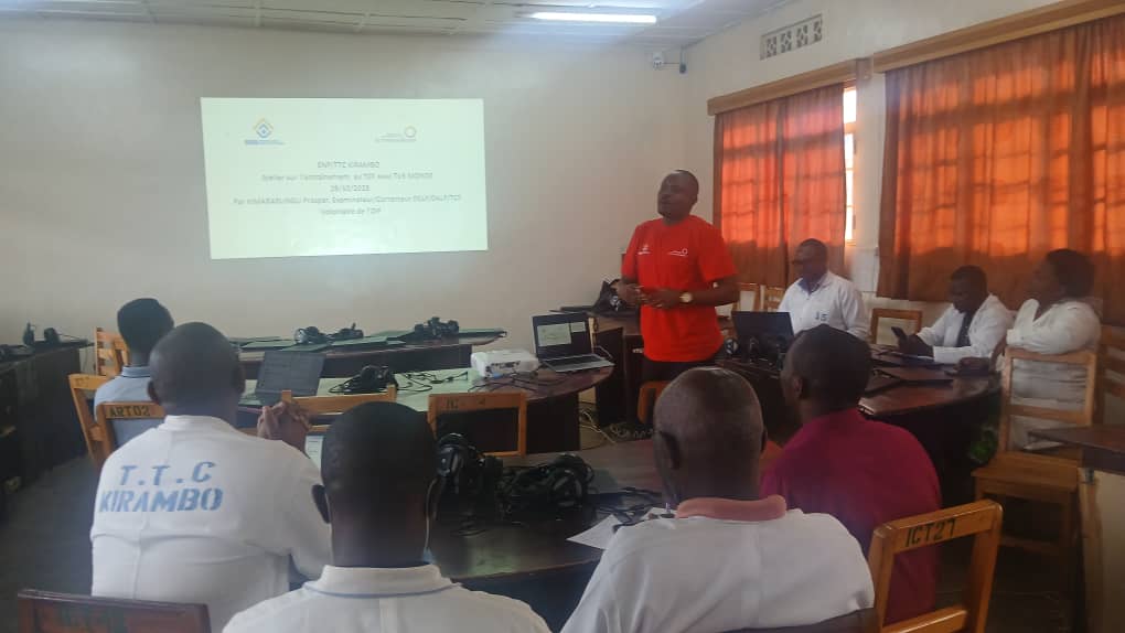 Dans le cadre du renforcement des compétences linguistiques en français du personnel du TTC Kirambo, le mercredi 29 octobre 2025, l’enseignant volontaire de l’OIF Prosper KIMARARUNGU a animé un atelier de formation autour du thème : « S’entraîner au Test de Connaissance du Français (TCF) avec TV5MONDE ».