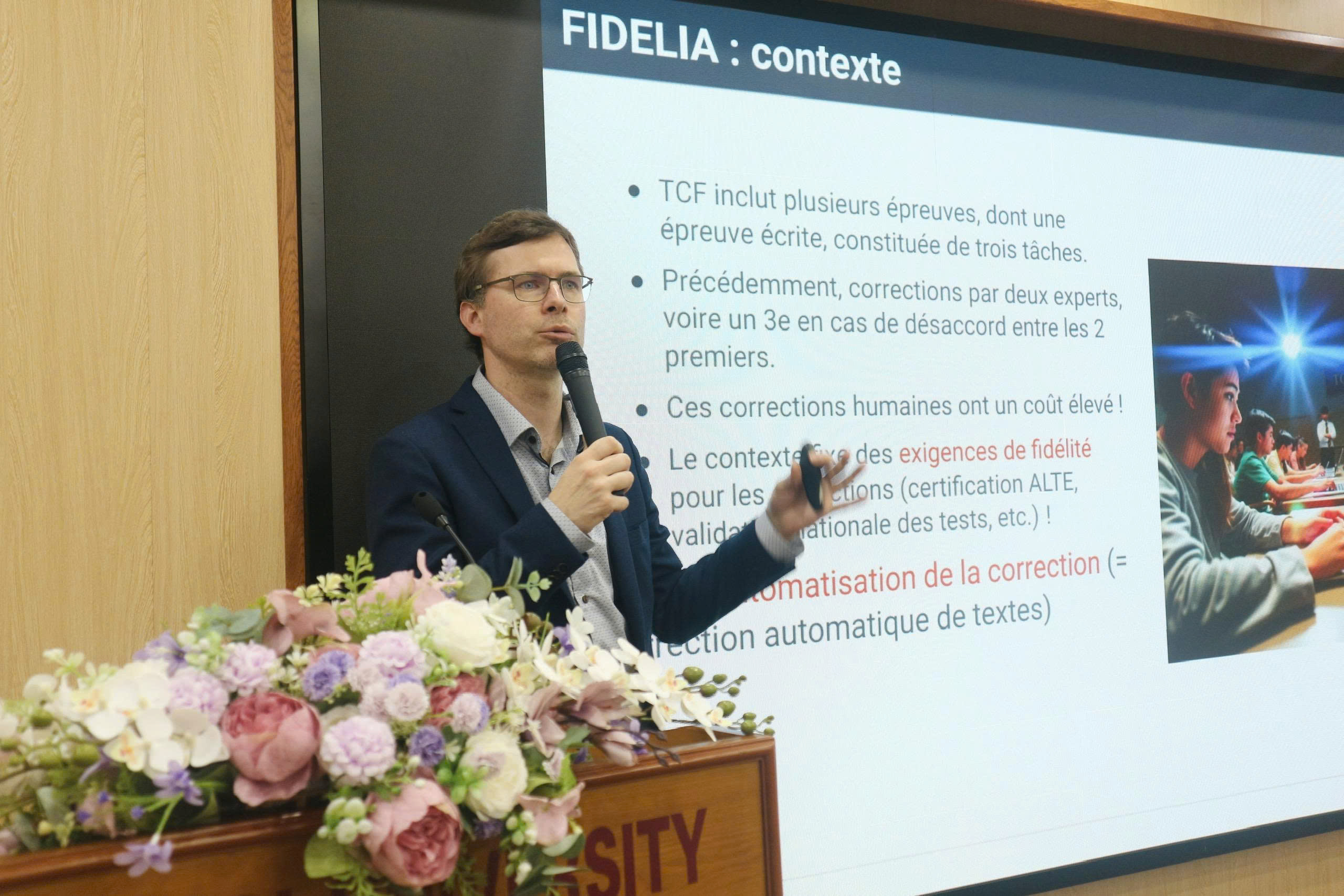 L’événement réunit des experts venus du Canada et de Belgique, aux côtés d’enseignants-chercheurs et de responsables académiques d’universités du Vietnam. Au total, quinze communications sont présentées, abordant les multiples dimensions de l’intégration de l’IA dans l’enseignement supérieur et la recherche.