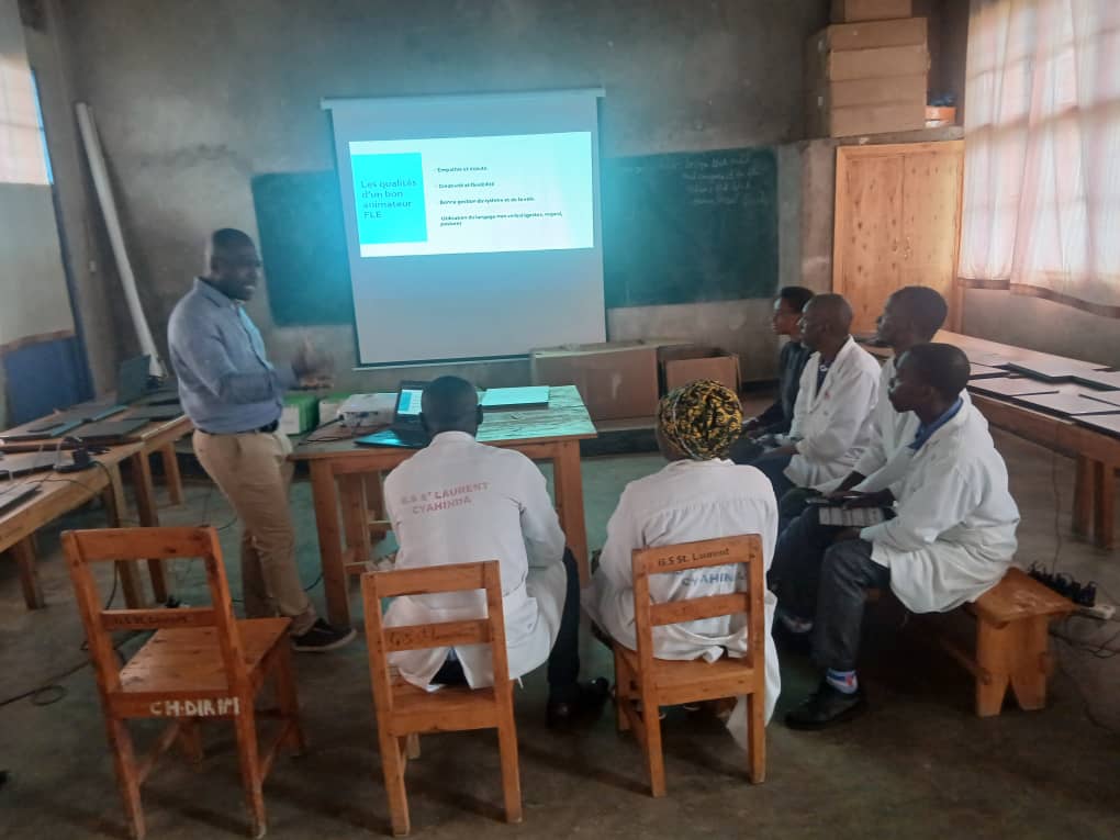 Le mercredi 22 octobre 2025, s’est tenue une séance de formation consacrée à l’animation de la classe de français langue étrangère (FLE) au Groupe Scolaire Saint Laurent de Cyahinda dans le district de Nyaruguru (Province du sud, Rwanda). L’atelier a été animé par le volontaire de l’OIF Selom Komi KPAKPO, enseignant et formateur du FLE, avec la participation de six (6) enseignants de français dudit établissement. La formation avait pour objectifs de faire comprendre le rôle de l’enseignant dans l’animation de la classe, d’identifier des techniques d’animation adaptées aux différents publics et de découvrir les divers outils et activités favorisant la participation active.