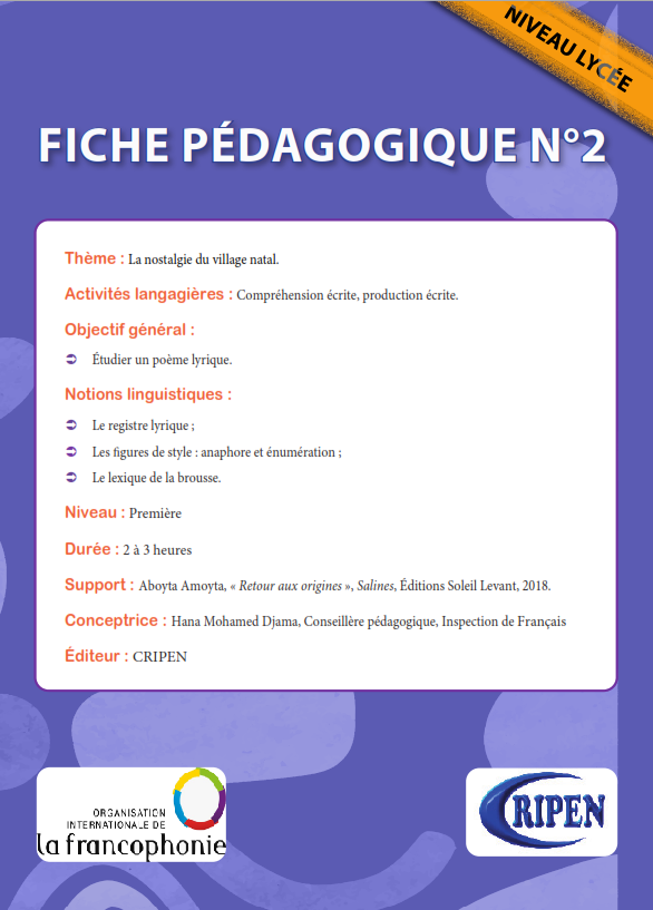 La série de fiches pédagogiques présentée ici est le résultat d’un travail collaboratif conduit dans le cadre d’un projet porté par l’Organisation Internationale de la Francophonie (OIF) et par le...