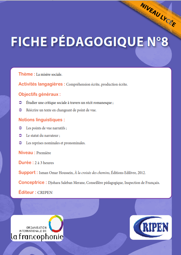 La série de fiches pédagogiques présentée ici est le résultat d’un travail collaboratif conduit dans le cadre d’un projet porté par l’Organisation Internationale de la Francophonie (OIF) et par le...